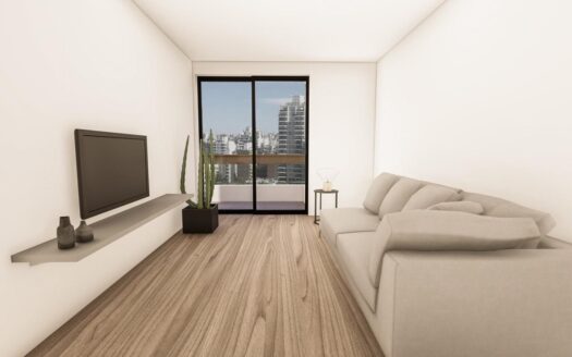 Departamento monoambiente a estrenar en Zona Río. Pichincha con balcón, orientación Este.