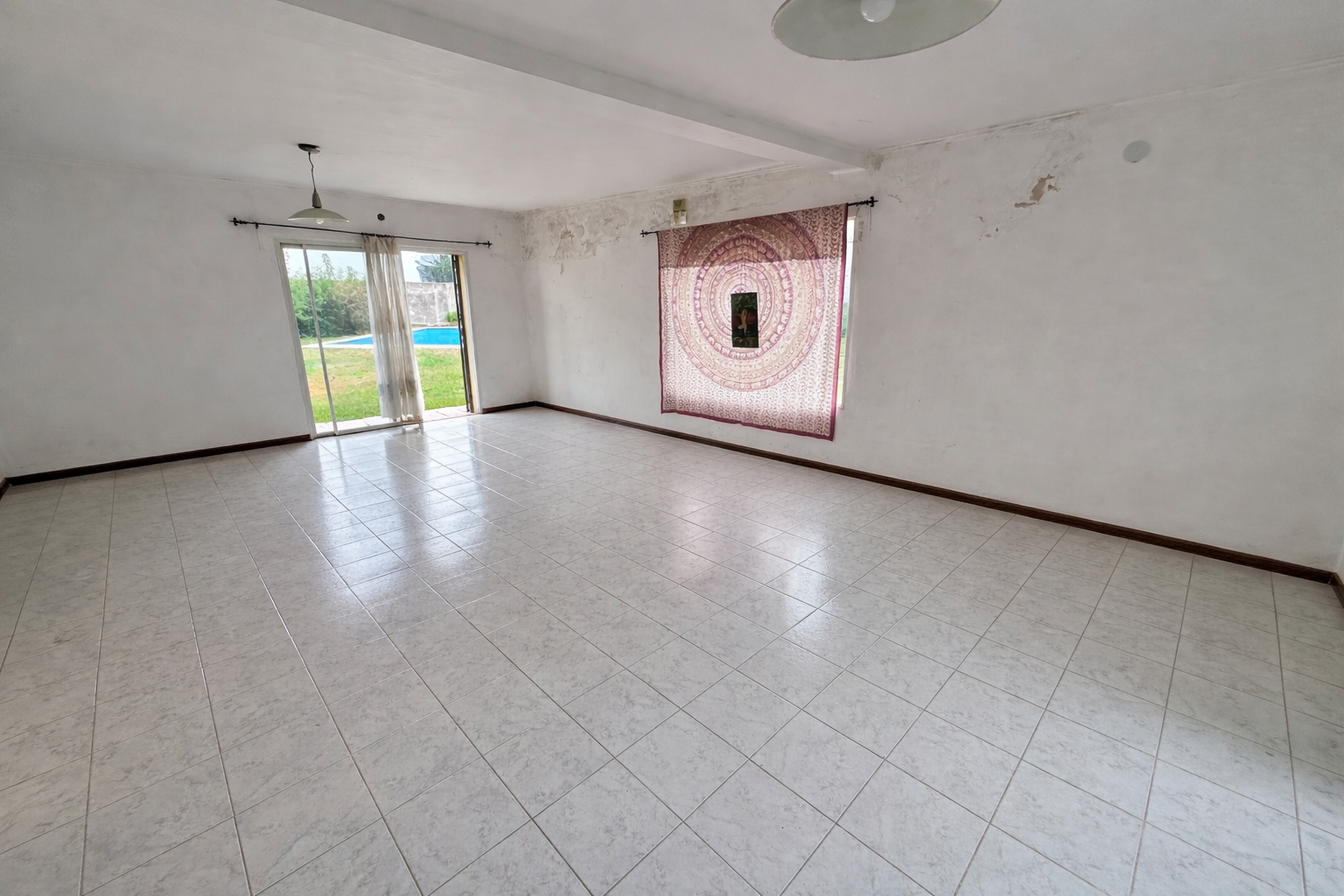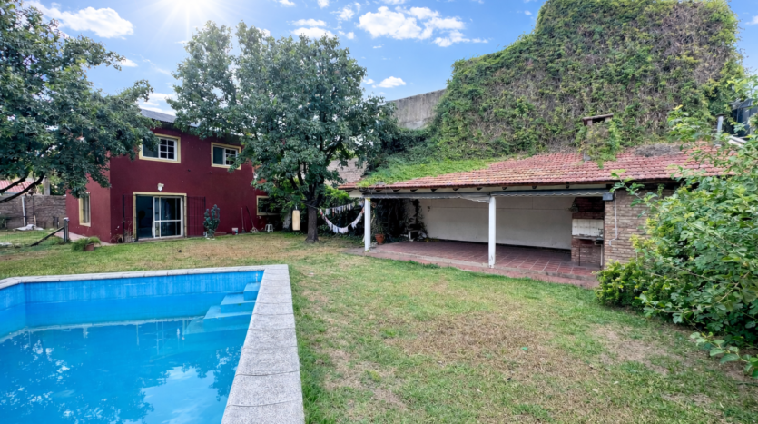 Propiedad construida sobre un amplio terreno, desarrolada en 2 plantas, en planta baja una gran sala de estar con cocina comedor integrada, cochera y toillette, en planta alta dispone de 3 dormitorios con placard y 2 baños completos, uno de ellos en suite. Lo que mas destaca es el patio con mucho espacio verde, donde se encuentra la pileta y un quincho semi cubierto con parrilla, sector lavadero y baño. Ubicada en una zona inmejorable de la ciudad, sobre Avenida y a metros de la ruta 11, cuenta con todos los servicios y esta lista para escriturar.