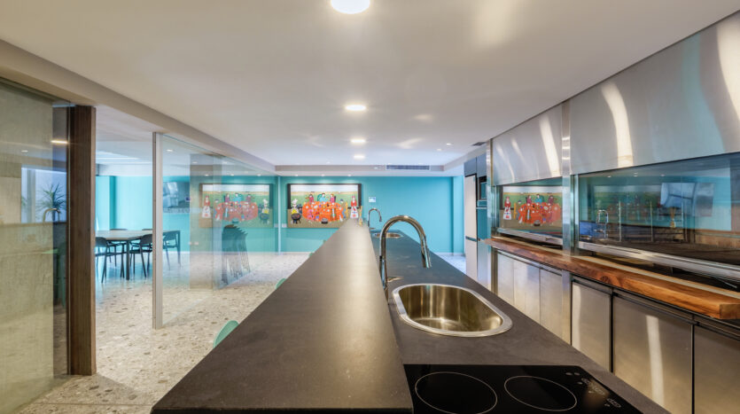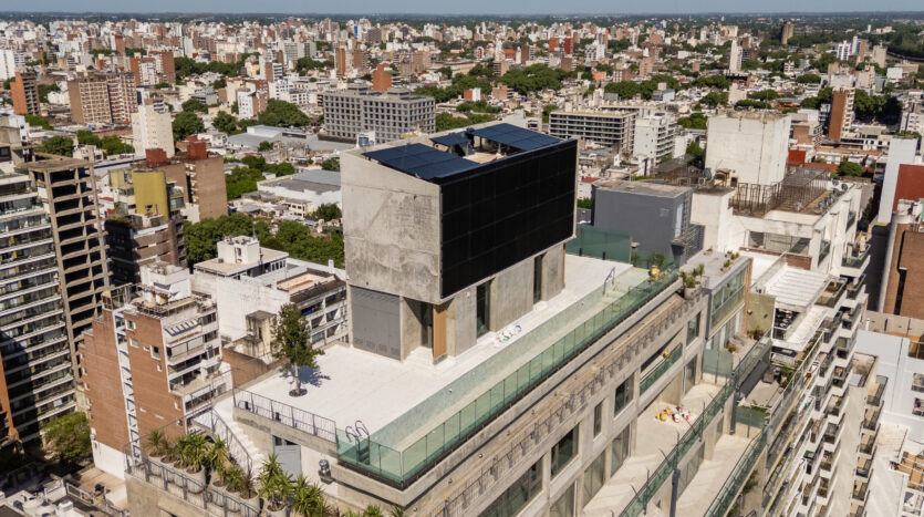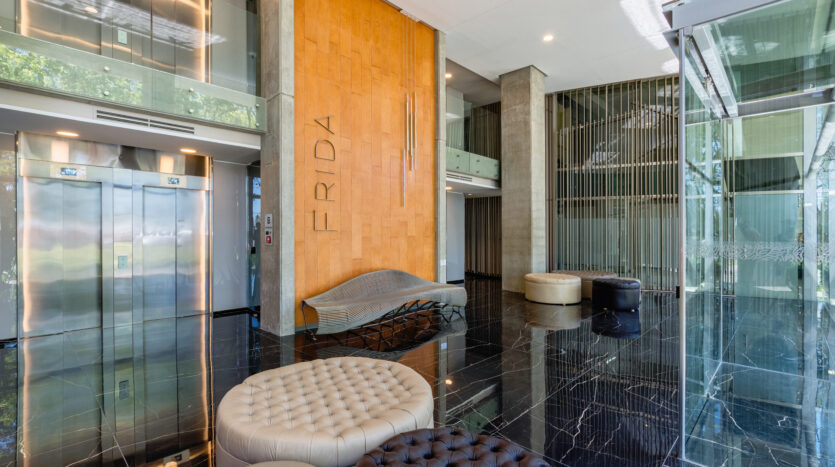 Proyecto: Edificio Frida con 3 subsuelos, planta baja y 23 pisos de altura coronados por una piscina panorámica con deck solárium en la azotea. En planta baja se ubica el Hall de ingreso en doble altura con acceso peatonal desde Av. Rivadavia y un salón de usos múltiples. En el 1º piso se encuentran las siguientes amenidades: gimnasio totalmente equipado, spa con sauna, jacuzzi, relax zone y vestuarios; dos quinchos con sector de parrillas independiente y sala de juegos para niños. Grupo Electrógeno y seguridad 24 horas. 4 ascensores.
