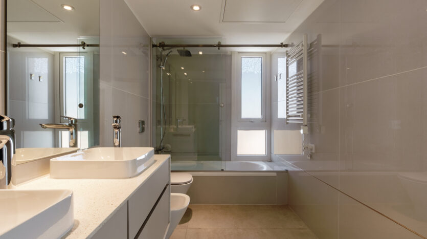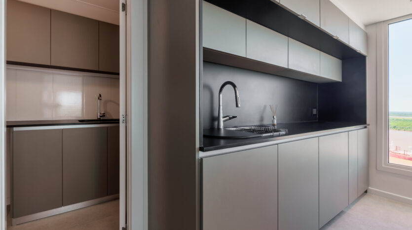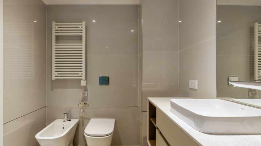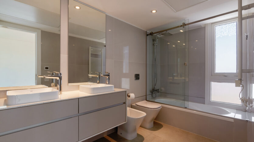 Pisos de porcelanato, aberturas de aluminio con DVH, placares completos marca Reno, agua central del edificio, calefacción y climatización por aire mediante equipos VRV (unidad oculta y con termostato por ambiente), terminaciones en yeso, cocinas con mobiliario completo de bajo mesada, alacena marca Reno, mesadas en silestone, lavadero con segunda bacha de servicio, loza sanitaria y griferías de primeras marcas, accesorios y espejos colocados.