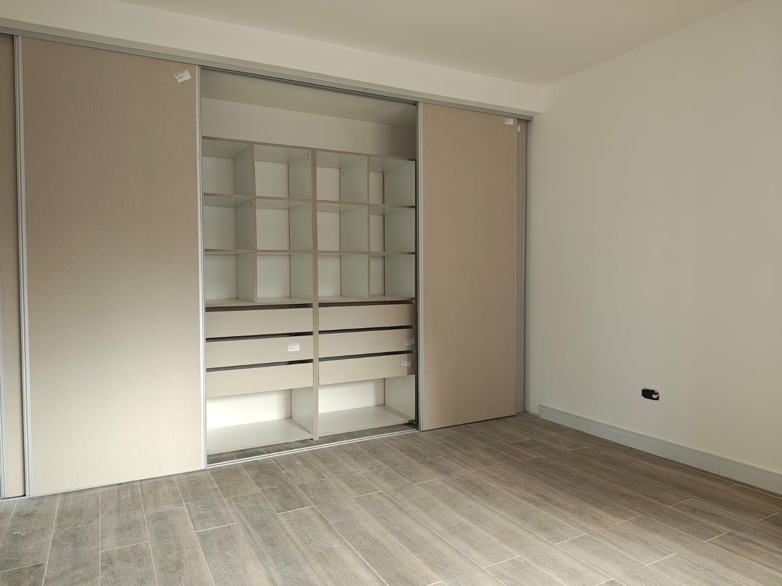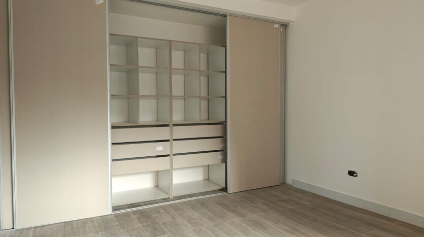 – Placares con interiores y frentes en melamina, brindando organización y estilo.