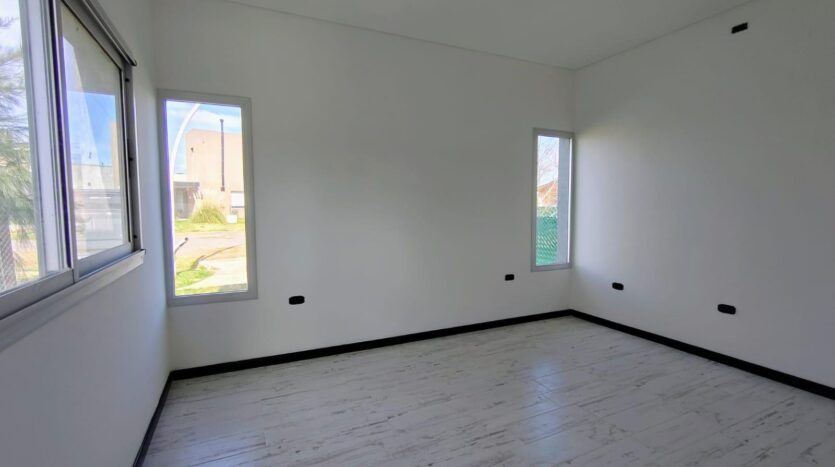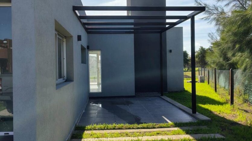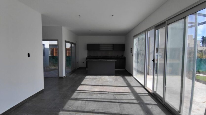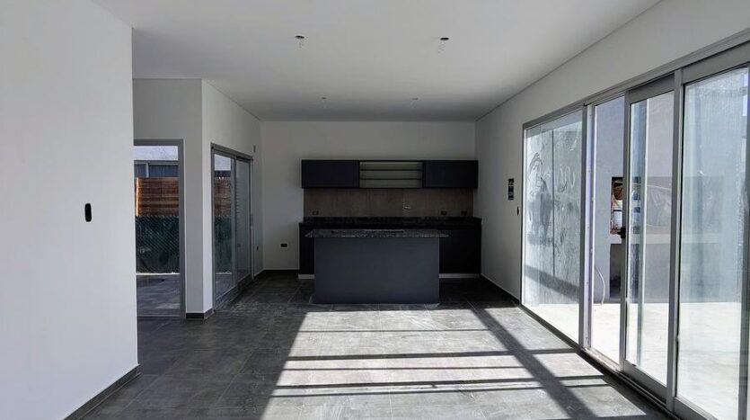 Venta casa de dos dormitorios en barrio cerrado Brisanova en la ciudad de Pueblo Esther. La propiedad se encuentra emplazada en un lote de 398 m2. Tiene una superficie cubierta de 100 m2 con detalles de calidad, cuenta con dos dormitorios, amplio living comedor, parrillero y pérgola. Baño principal completo y baño de servicio. Posibilidad de pileta. Entrega estimada 60 días. POSIBILIDAD DE PERMUTA.