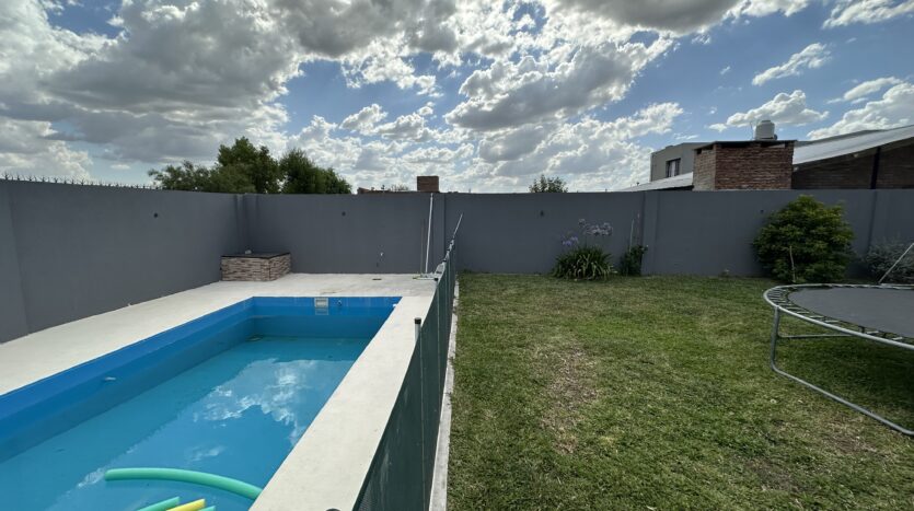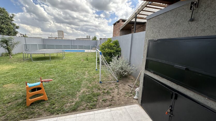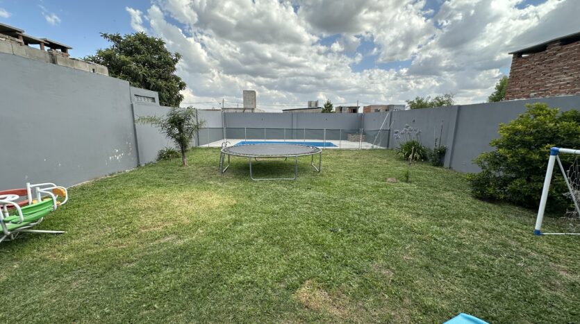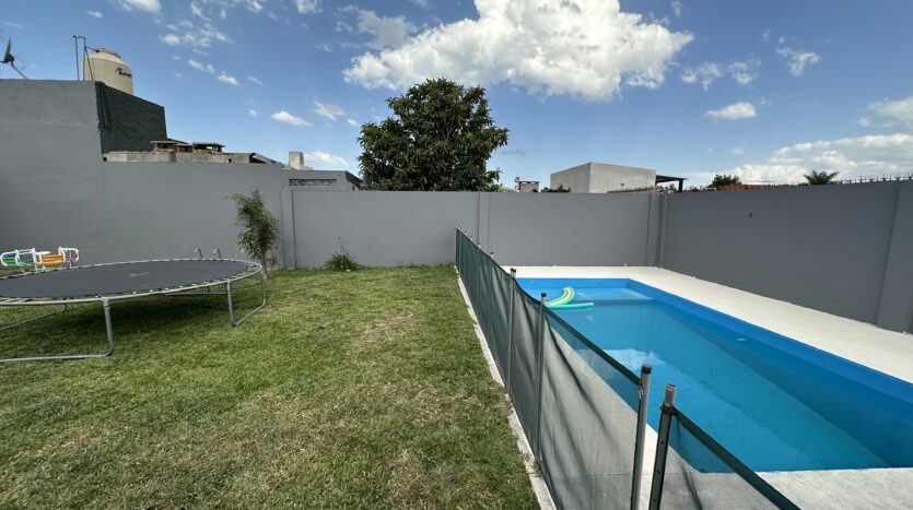 Propiedad emplazada en un terreno de 350m2 (10×35) compuesta de jardin al frente, cochera descubierta con espacio para 3 vehiculos, 2 dormitorios, espacio de living, cocina comedor, baño completo, galeria con sector lavadero y parrillero, amplio patio verde con pileta. Barrio abierto «Parque habitacional ibarlucea»