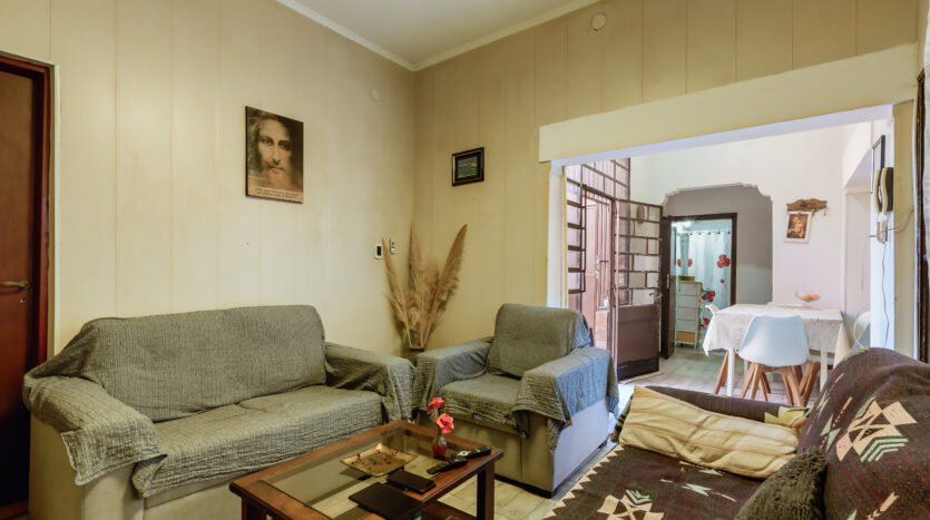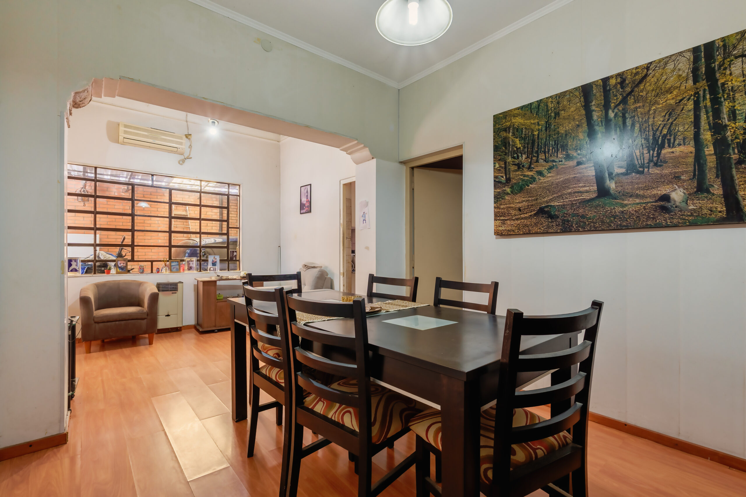 El inmueble se encuentra en muy buenas condiciones. Se compone de un jardín delantero, 3 dormitorios y una habitación comodín, doble living comedor, cocina, baño completo, un extenso garage para 3 autos. Ademas cuenta con un patio trasero el cual tiene un toilet. Techos de losa.