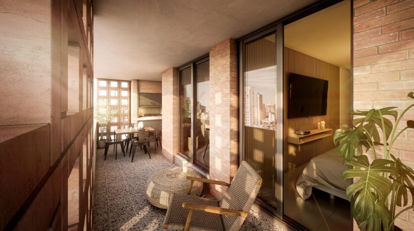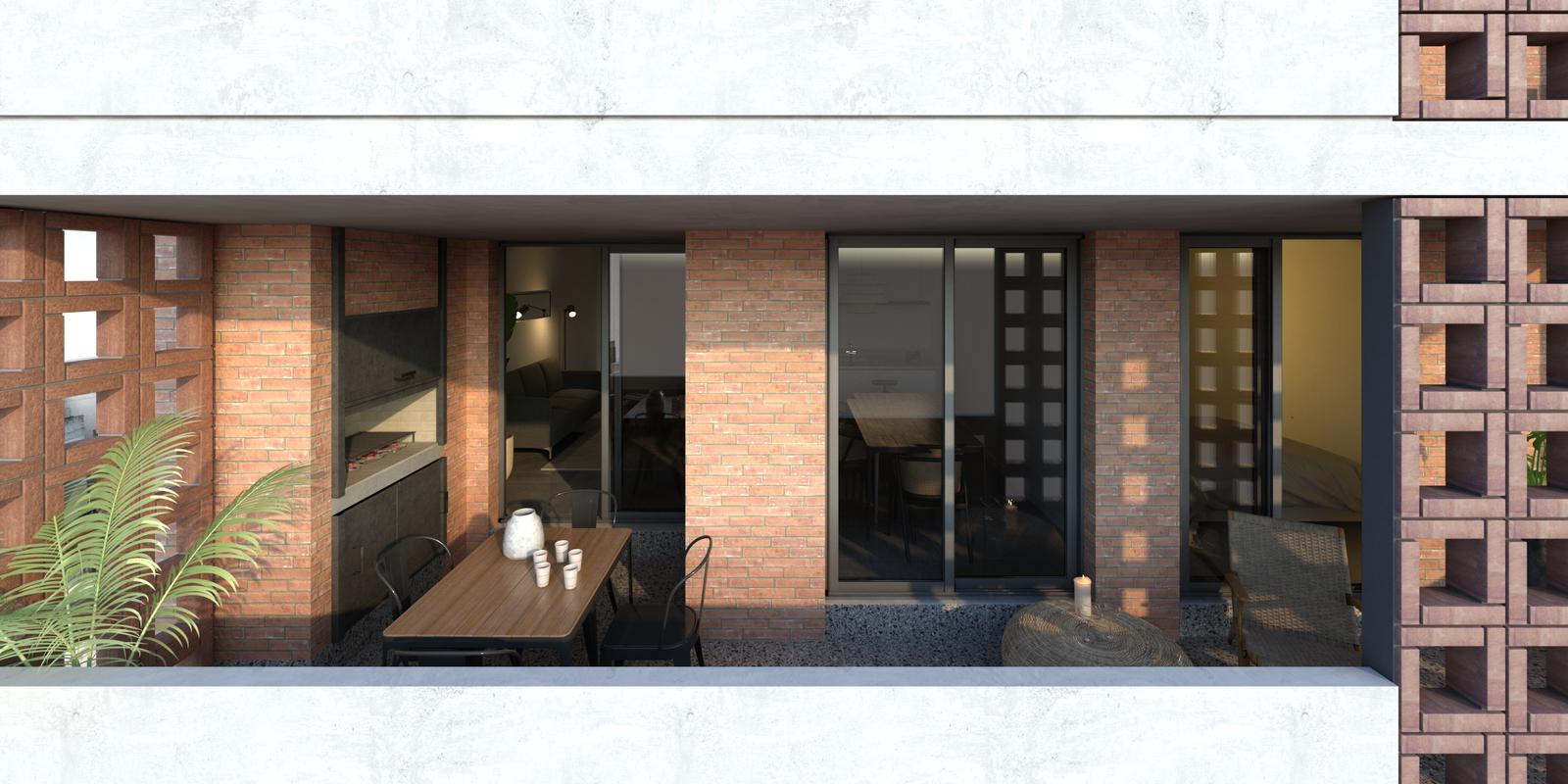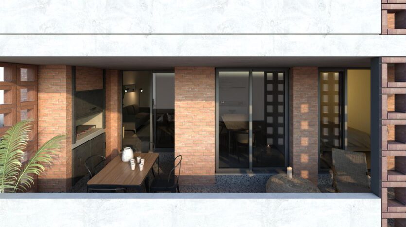 -Balcón aterrazado gigante con parrillero exclusivo y frente metálico en departamentos de 2 y 3 dormitorios.