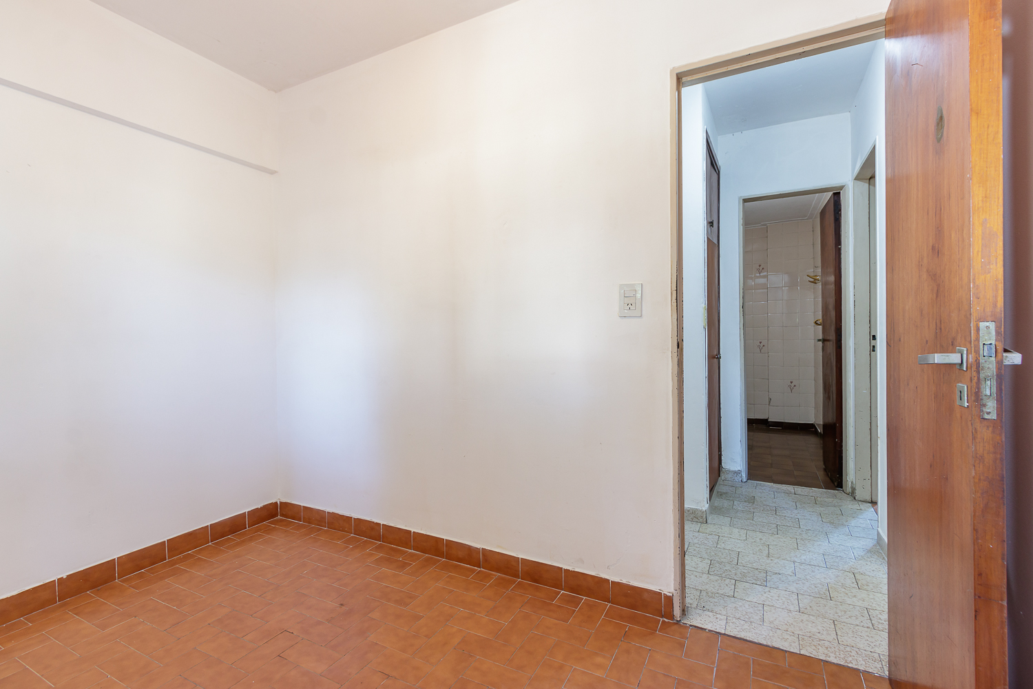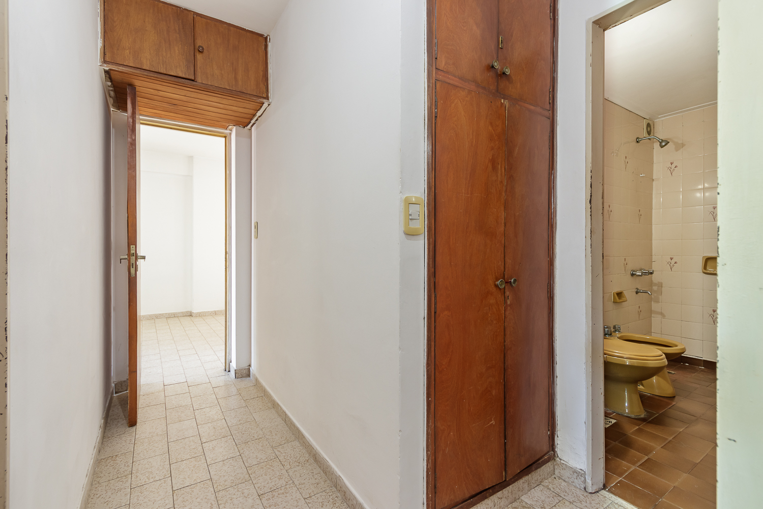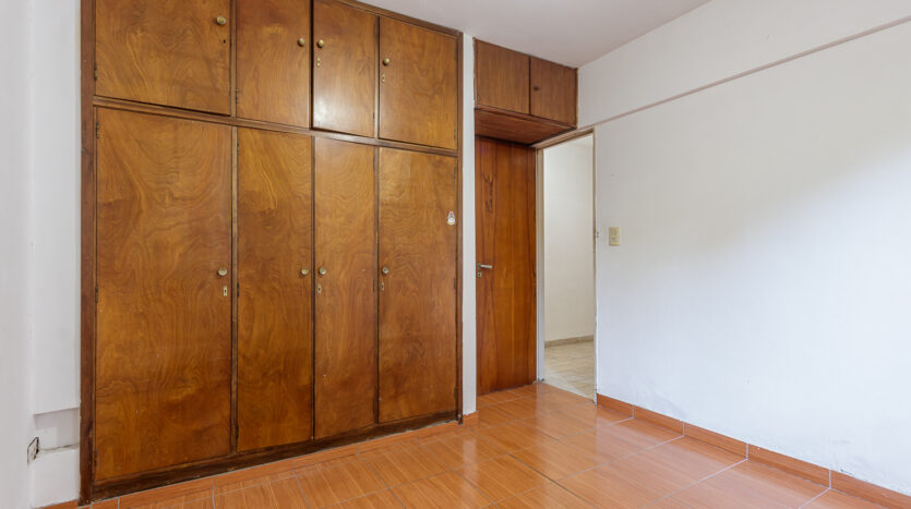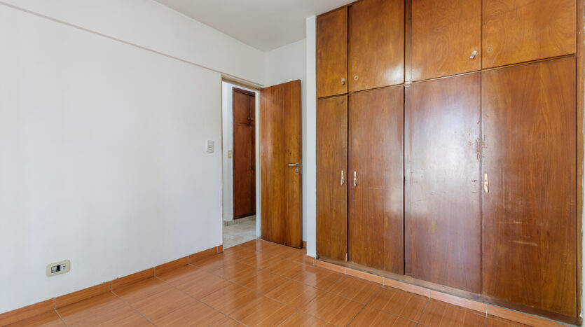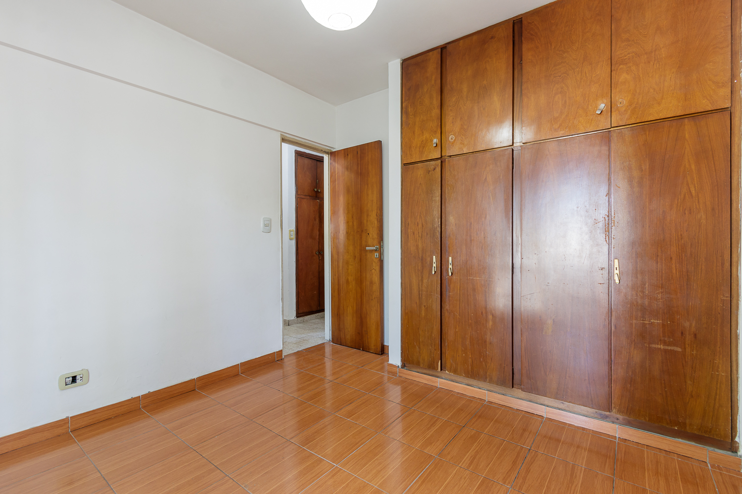 Dormitorios con piso cerámico en excelente estado de conservación, con placares de madera con interiores, uno de los dormitorios con balcón hacia el frente del edificio sobre calle Entre Ríos.