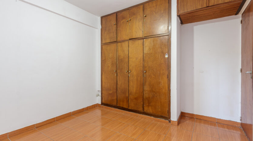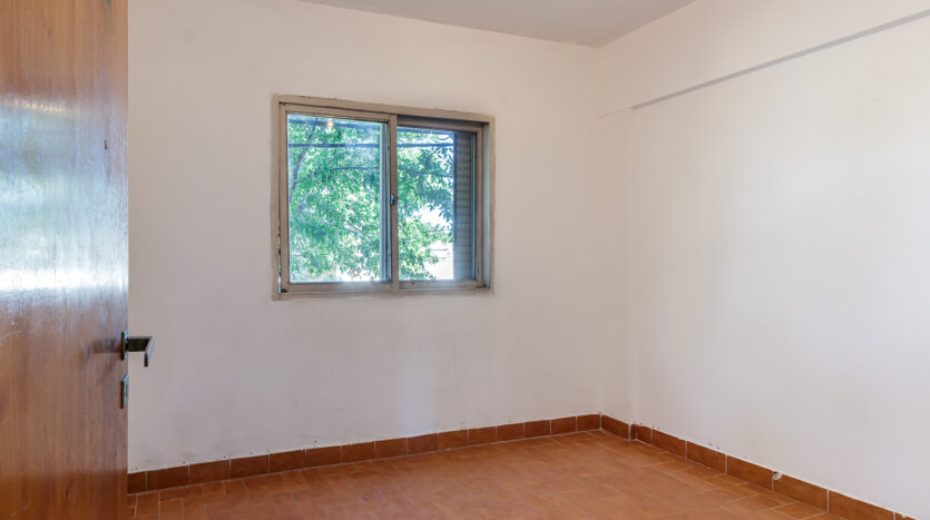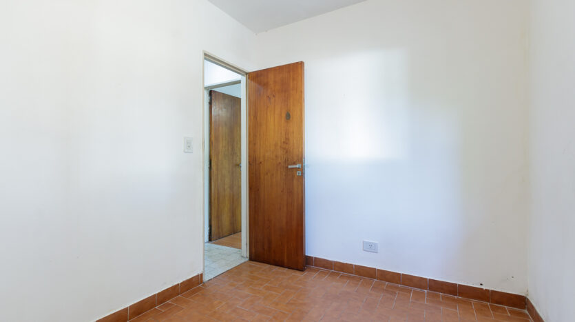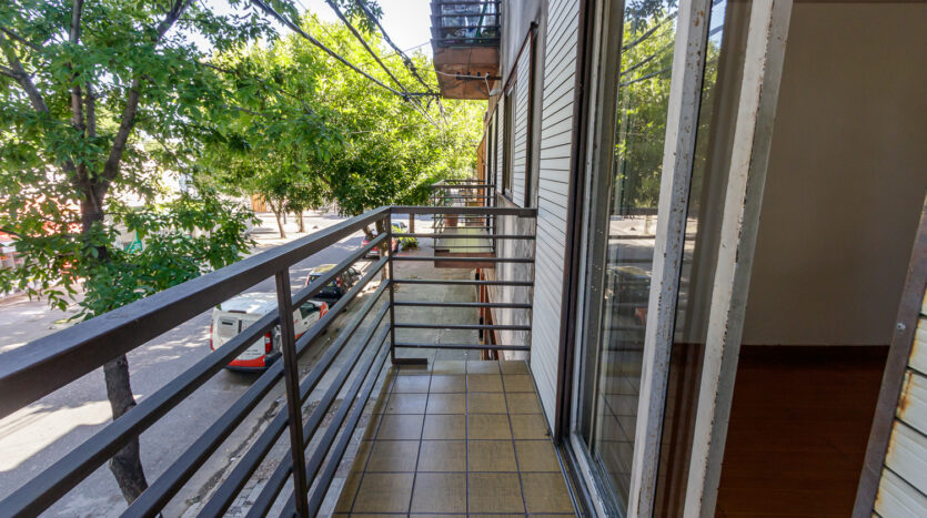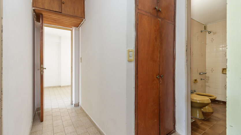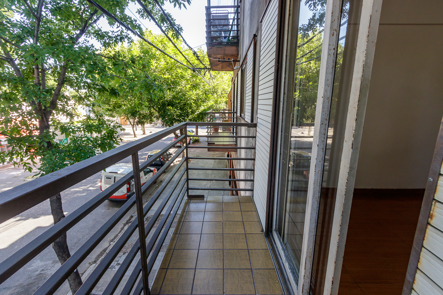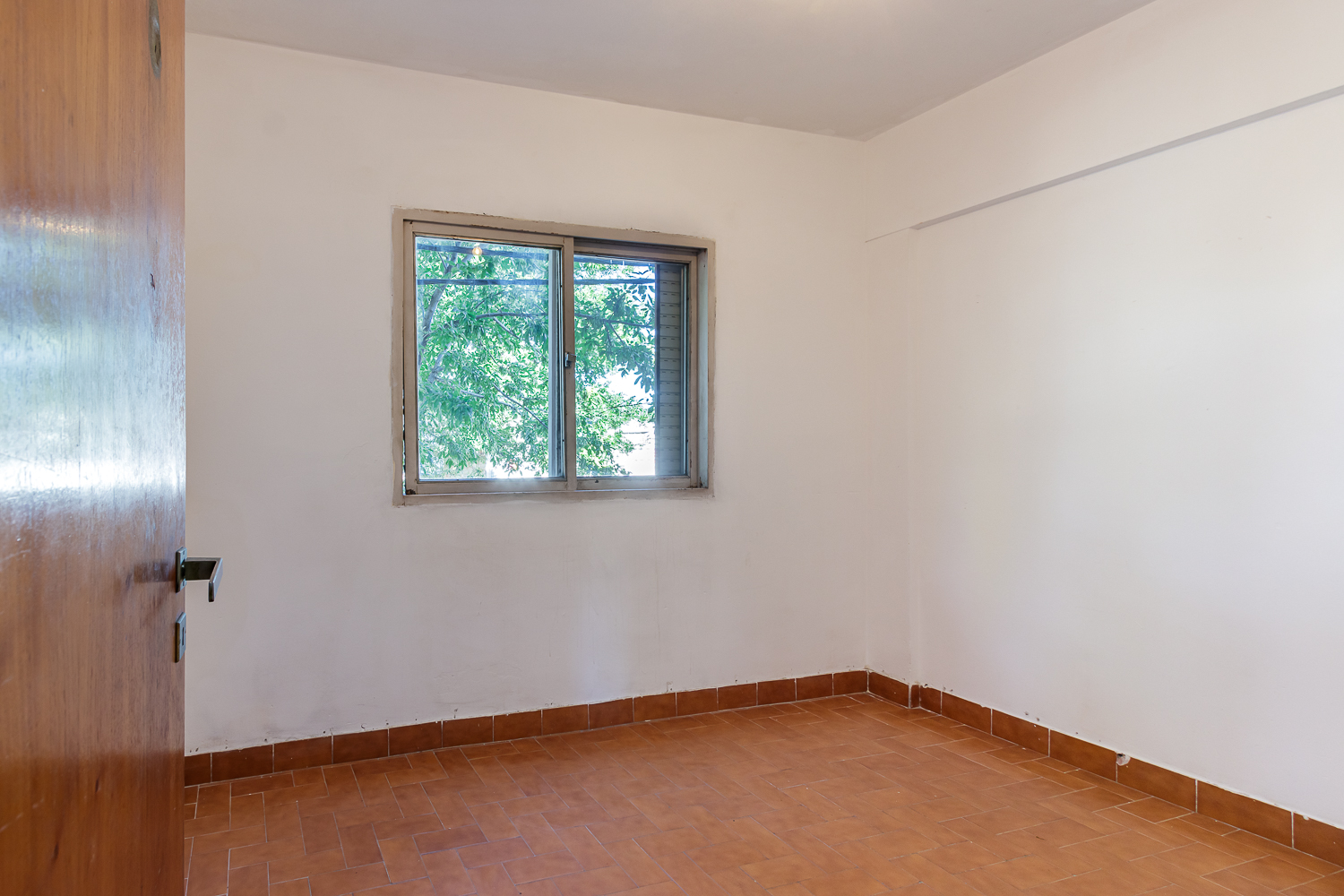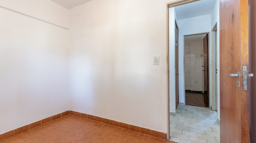 Dormitorios con piso cerámico en excelente estado de conservación, con placares de madera con interiores, uno de los dormitorios con balcón hacia el frente del edificio sobre calle Entre Ríos.
