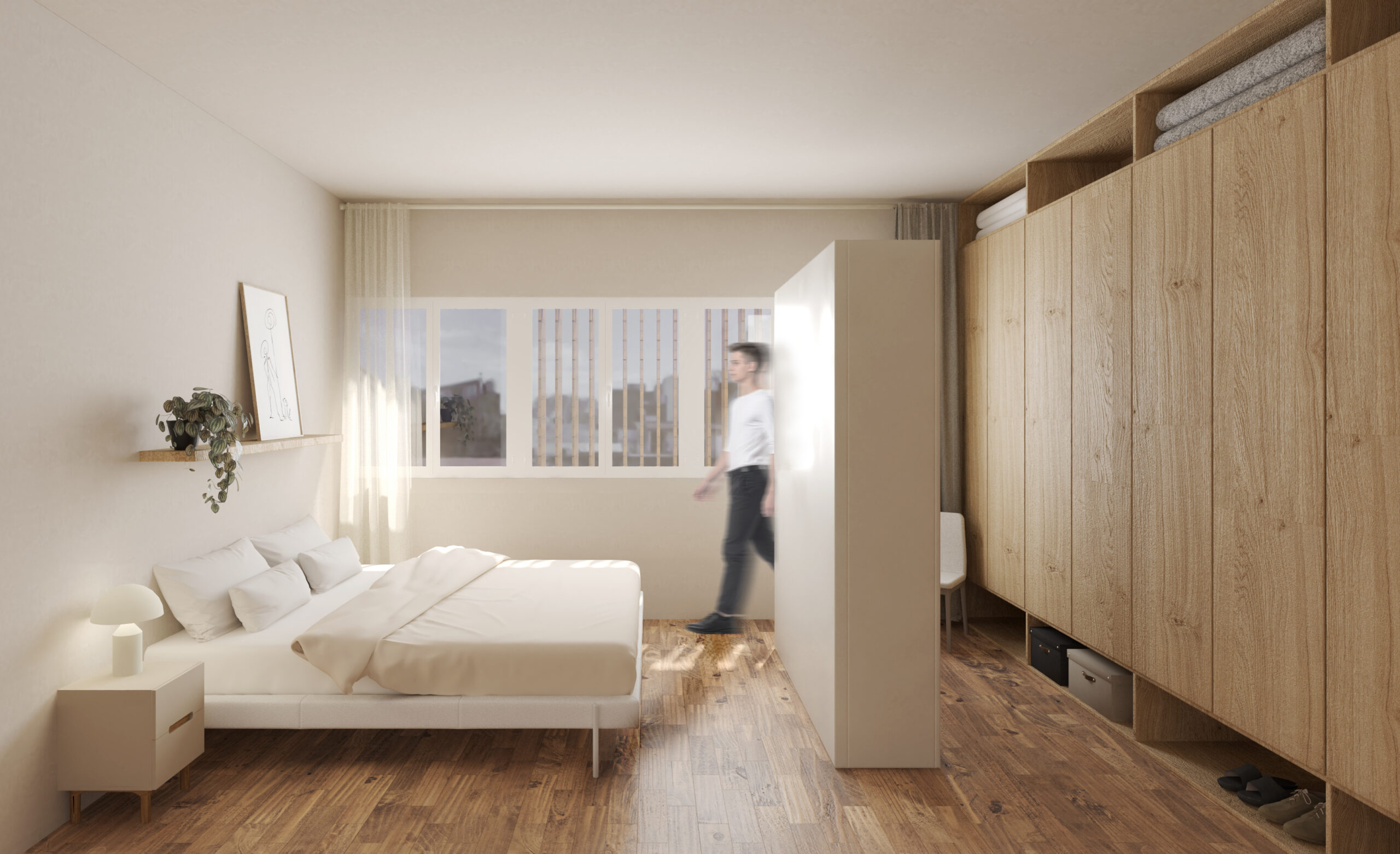 Intimo/Dormitorios: Flotante símil madera de alta performance.
