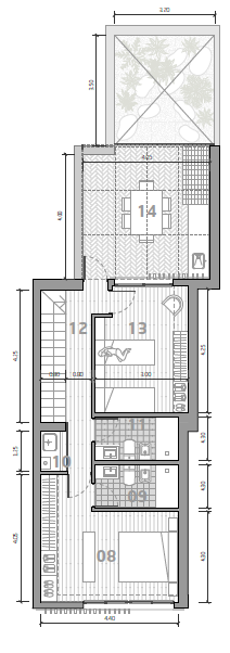 Terraza: Parrillero de losa y ladrillo con pulmón de chapa, mesada de hormigón, bacha Johnson o calidad similar,