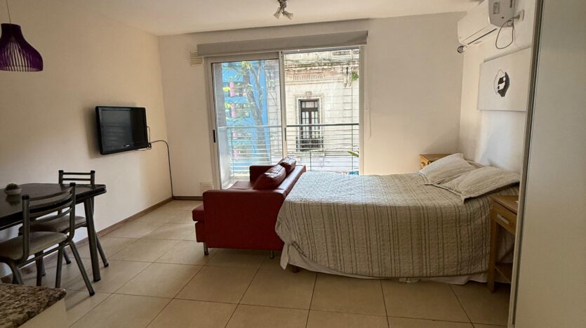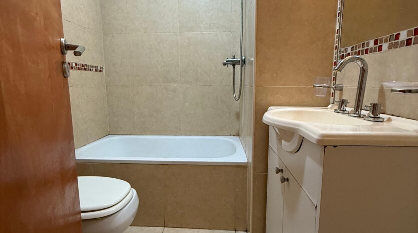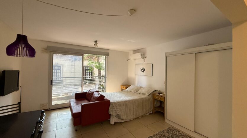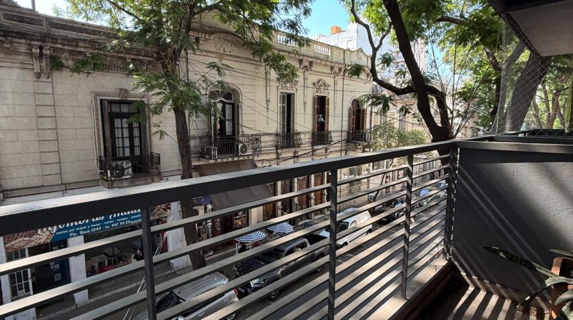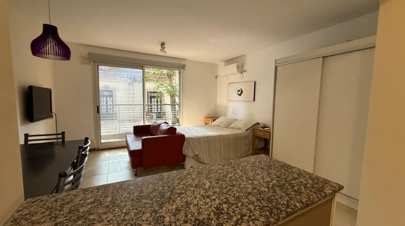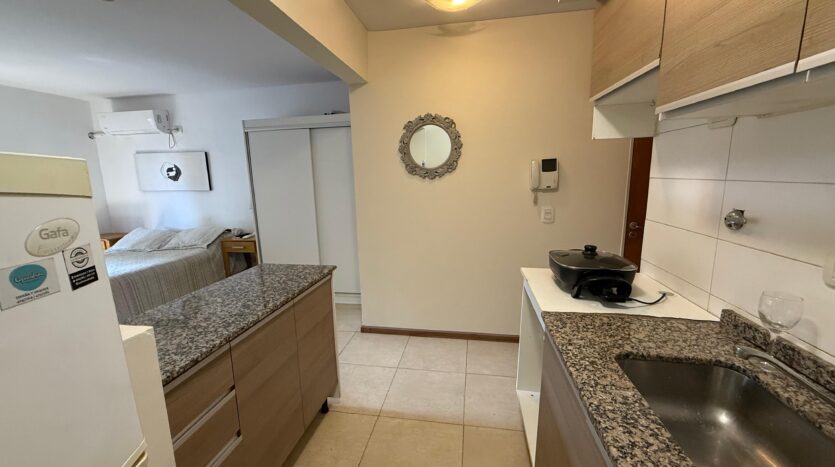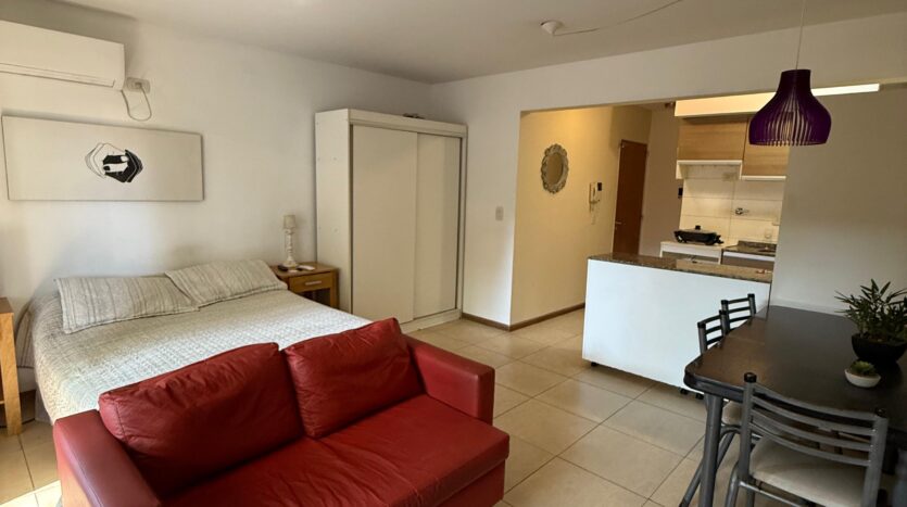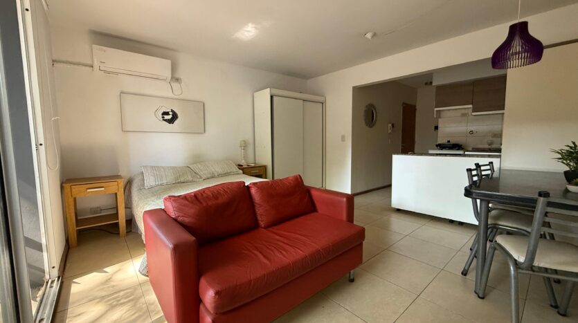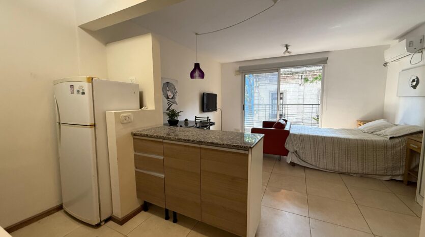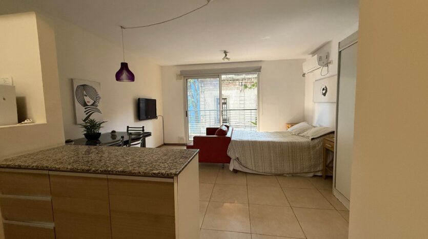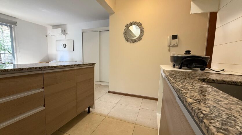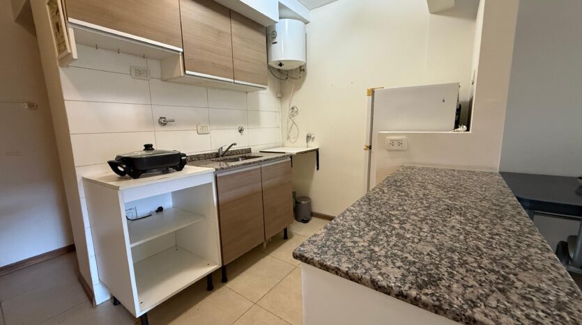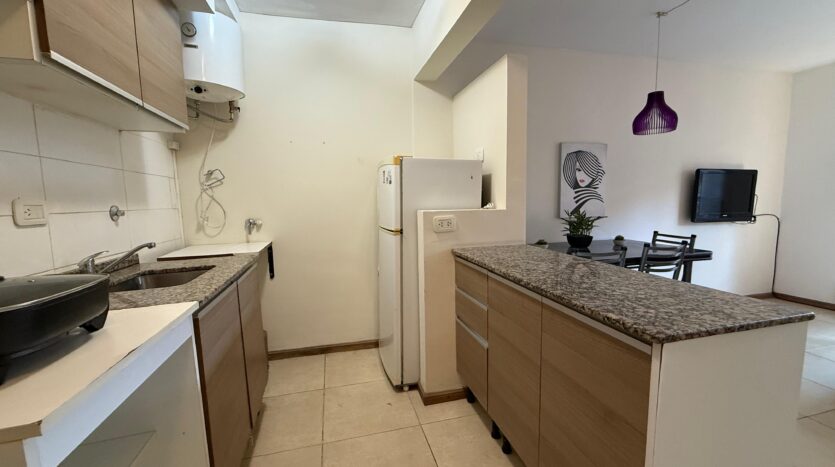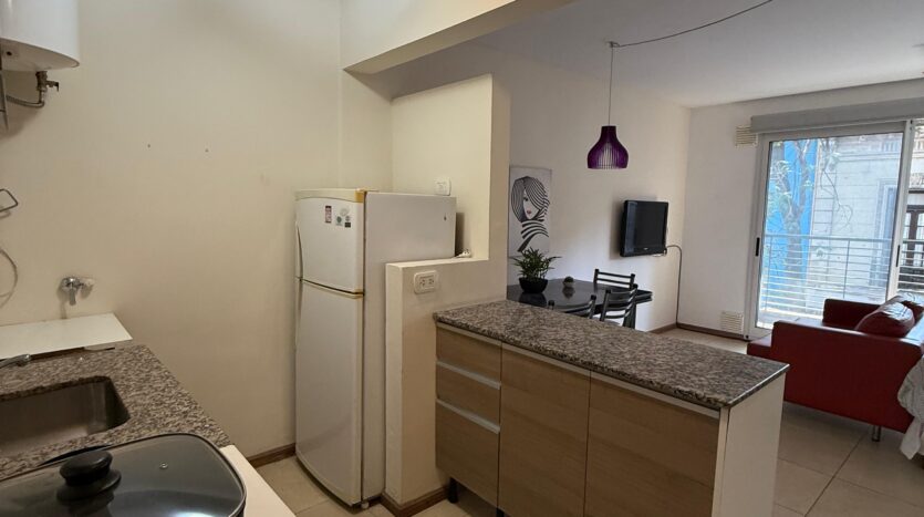 Salida a balcón espacioso, cocina completa con barra, espacio para heladera, desagüe y conexión prevista para lavarropas.