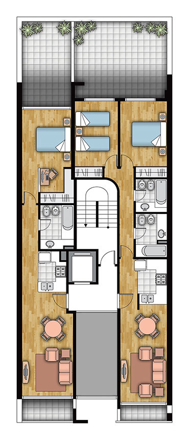 • Amplios balcones terraza al frente y contrafrente.