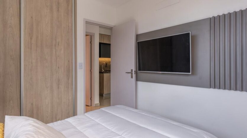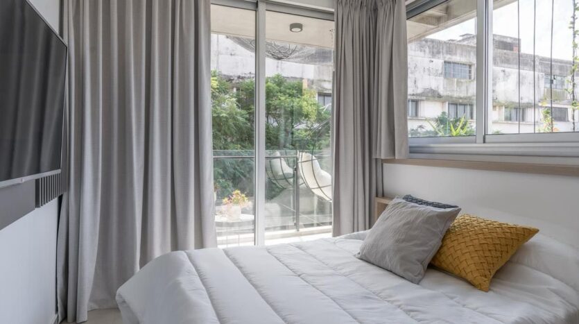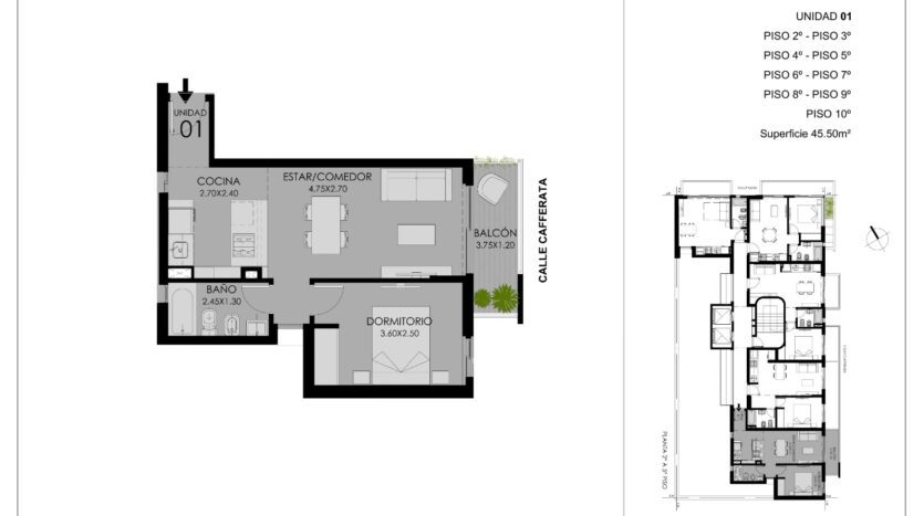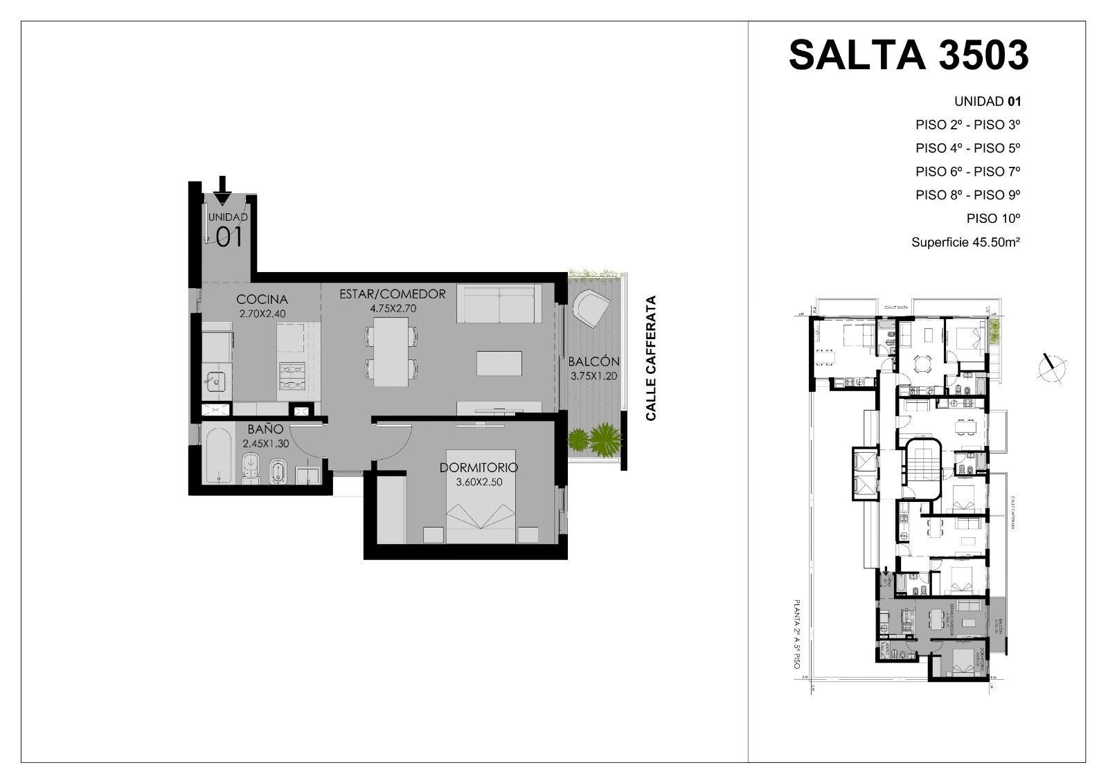 Edificio de gran calidad se desarrolla en subsuelo, planta baja y diez pisos, con terraza equipada. Compuesto por espacio para estacionar, local comercial, oficinas y departamentos con unidades monoambiente, uno y dos dormitorios. La terraza, de 200 m2, se compone con quincho semicubierto, área solárium, duchas, sector aeróbico intervenido por CRUCIJUEGOS, living exterior, fogonero, parrilleros y espejo de agua.